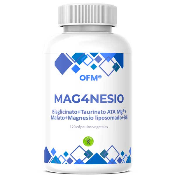 MAG4NESIO OFM is Dr. Odile Fernández’s magnesium supplement. It is formulated with the four most bioavailable forms of magnesium on the market:Magnesium BisglycinateMagnesium Acetyl Taurinate – ATA Mg®Magnesium MalateLiposomal MagnesiumA perfect combination that helps improve magnesium absorption while making its effect last longer over time. In addition, this magnesium supplement is enriched with Vitamin B6, which helps enhance its effectiveness.Its benefits are multiple: it supports the proper functioning of the nervous system, improves muscle function, boosts energy metabolism, and contributes to more restorative sleep. Importantly, it has no laxative effects.This magnesium supplement is recommended to help combat stress in all its expressions and symptoms: insomnia, fatigue, muscle cramps, contractures, bruxism, nervousness, restlessness, menstrual disorders, or concentration problems.The recommended dose is 2 capsules per day, preferably taken at night before bedtime.Vegan. Gluten-free, sugar-free, GMO-free, free from artificial flavors, sweeteners, colorants, magnesium stearate, and silicon dioxide.