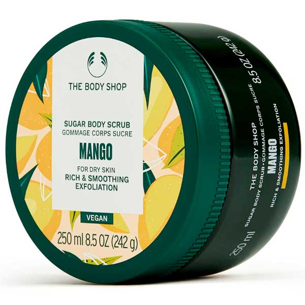 The Body Shop Mango Body Scrub regenerates and hydrates dry skin, removing impurities and dead skin cells thanks to its mango seed oil and sugar content. Vegan formula. 90% of its ingredients are of natural origin.