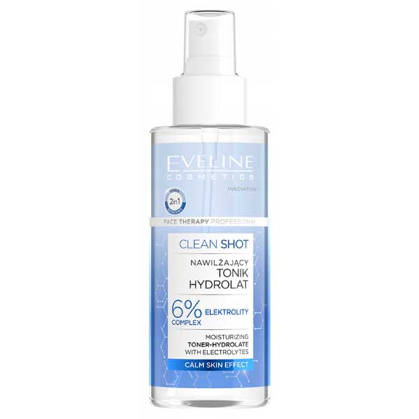 Eveline Clean Shot 6% Electrolyte Complex is a vegan facial toner that hydrates, soothes, and refreshes the skin thanks to its exclusive electrolyte complex combined with chamomile, rose extract, and green tea. We recommend applying to clean skin. Do not rinse.